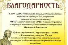 Из Тетюшского педагогического колледжа пришло благодарственное письмо!