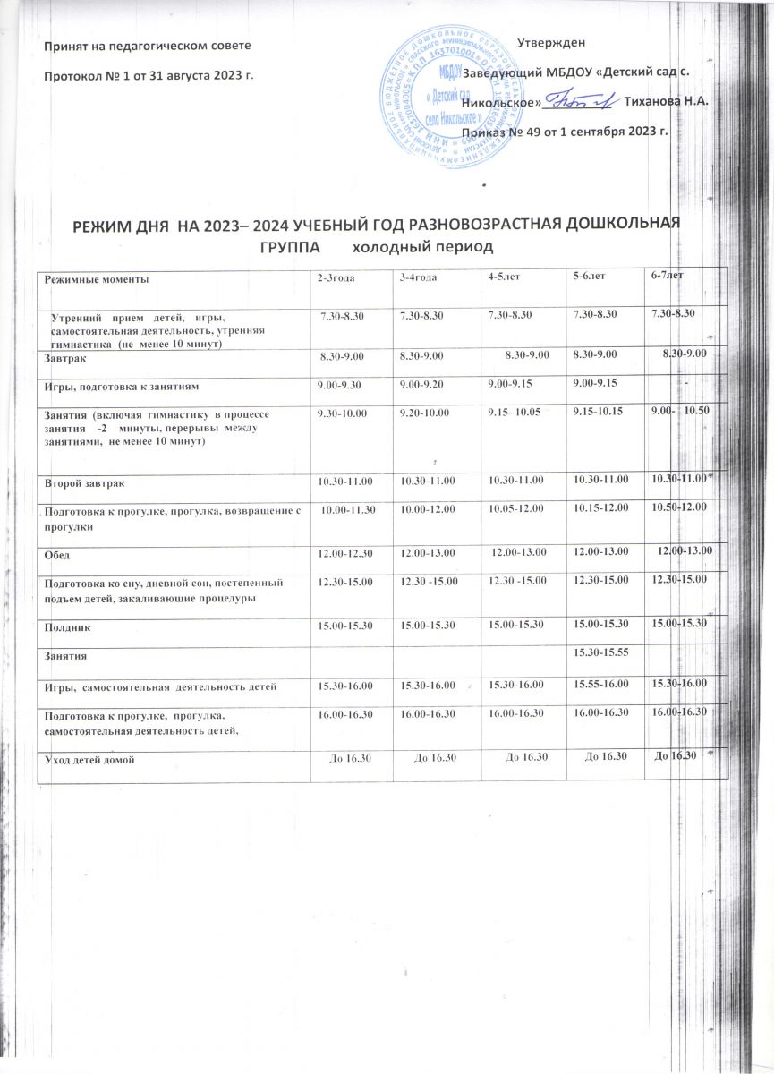 Режим дня на 2023-2024 учебный год