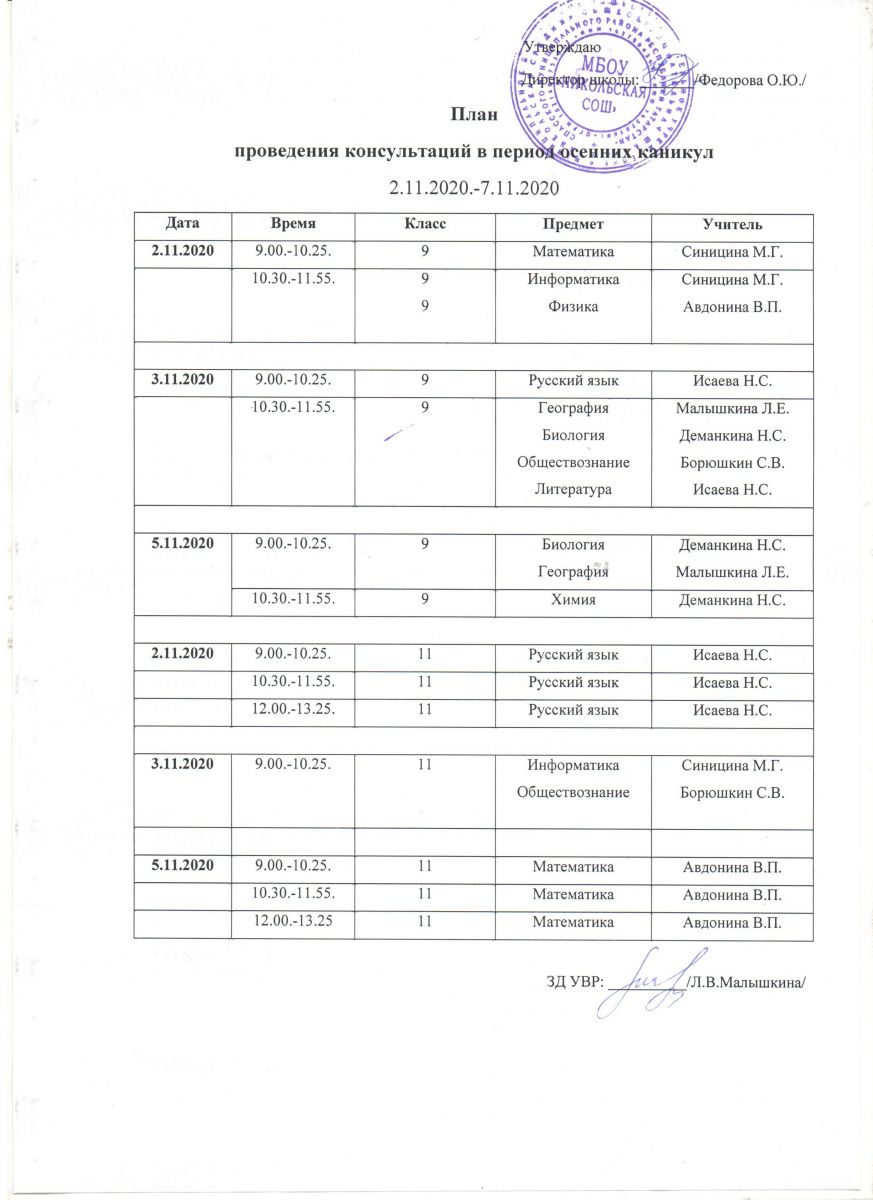 С 2 по 8 ноября школьники вышли на осенние каникулы. Для работы на каникулах составлен план мероприятий