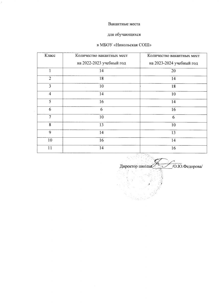 Информация по наличию вакантных мест для учащихся на текущий учебный год (2023-2024 учебный год)