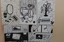 2) Выставка, рисование штрихами на тему "Город" участвовали ученики 4А кл., 1Б кл. (класс преподавателя Тимофеевой Е.Л.)