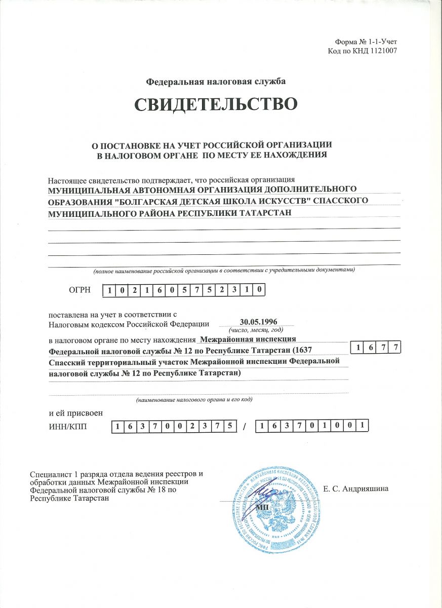 Муниципальная автономная организация дополнительного образования "Болгарская детская школа искусств" Спасского муниципального района Республики Татарстан