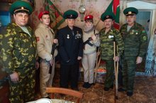 25 декабря 2019 года, пограничники запаса Зиатдинов Рашид, Захаров Константин и Грибанов Станислав; Юнармейцы Ковалев Дмитрий(командир) и Терехова Анастасия приехали в село Красный Вал Спасского района РТ поздравить с 85-летием пограничника запаса (КСАПО) Гущина Валериана Михайловича. От общественной организации ветеранов и пограничников запаса и боевых действий "Пограничная застава Спасская" ветерану вручили медаль "За службу на границе" (подписано удостоверение Председателем ООВБД и пограничников запаса ПФО Рафаилом Нурмыевичем Загидуллиным) и небольшой продуктовый набор. За чаем ветераны Погран войск вспоминали о службе и дали напутствие юнармейцам быть преданным Родине, беречь и защищать ее, уважать пожилых людей и помогать им. После чаепития Рашид Зиатдинов под гармонь спел свои авторские песни о границе и вместе со всеми легендарную "Катюшу". Видно было радость на лице ветерана и встретивших нас жены Алевтилы Владимировны и родственников!