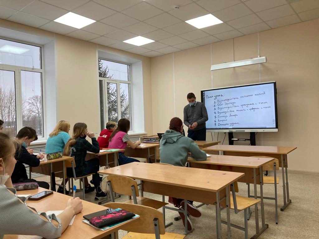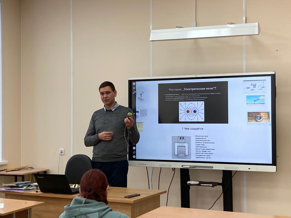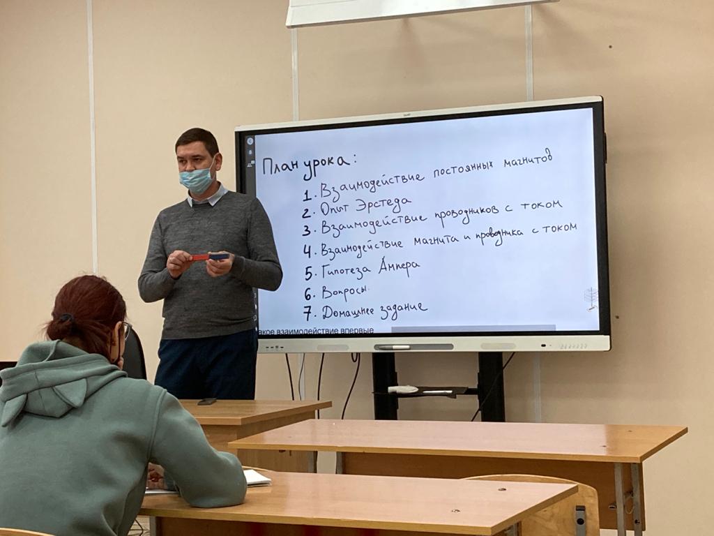 Опубликовано: 03.12.2020❄️❄️ Преподаватель Нургалеев Т. М. провёл открытый урок физики в группе 20310 по теме «Взаимодействие токов и магнитов». На уроке были применены различные методы обучения, в том числе были использованы возможности интерактивной доски. Урок прошёл увлекательно, интересно, студенты узнали много нового и познавательного. ❄️❄️