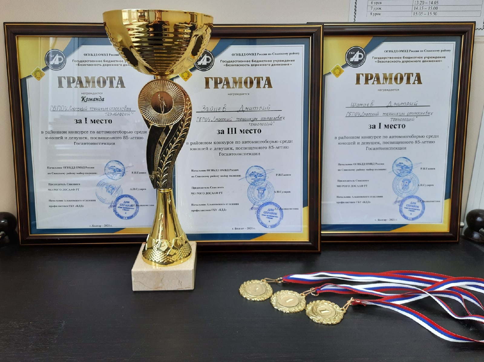 Опубликовано: 01.04.2021Сегодня, 01.04.2021 г., команда техникума в составе: Зайцев Дмитрий гр.20112, Хитов Илья гр.9214, Шамаев Дмитрий гр.9111 заняла 1 место в районном конкурсе по автомногоборью среди юношей и девушек, посвященного 85-летию Госавтоинспекции