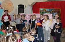 30 октября в Доме детского творчества ребята из объединения «В гостях у сказки» под руководством педагога дополнительного образования Шишкиной Н.В. показали театрализованное представление кукол «Сказка про умные пирожки и чудесные башмачки». В 10.00 представление посмотрели ученики БСОШ №2 посещающие пришкольный лагерь. В 11.00 сказка была представлена ученикам 5б класса БСОШ №1. В начале представления ребята познакомились с правилами поведения в театре. В конце второго представления провели мастер-класс по изготовлению бумажной куклы на руку в технике оригами.