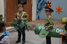 После концерта в спортивном зале встречали гостей праздника авиамодели и спортивные соревнования.