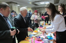 Поездка на благотворительную акцию «Доброта и любовь спасут Мир» 17.02.2014 14 февраля благотворительный фонд «Наз» совместно с банковской школой г.Казани провели благотворительную акцию «Доброта и любовь спасут Мир». От нашего района в мероприятии приняли участие 10 воспитанников из первой и второй городских школ и педагог дополнительного образования «Дома детского творчества» Симанова Ю.Н. Ребят тепло приветствовали директор банковской школы Евстратов А.А. и президент фонда «Наз» Сайфутдтнова Н.Ф., поздравили с днем влюбленных, затем присутствующим был представлен студенческий концерт. Целью данного мероприятия является привлечение учащихся к дальнейшему поступлению в данное учреждение. По завершению концерта состоялся праздничный обед, также всем участникам были вручены подарки, предоставленные администрацией банковской школы.