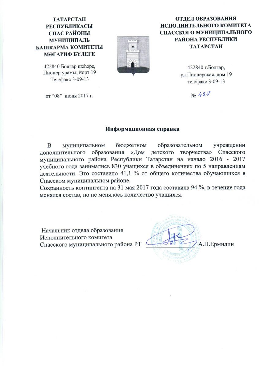 Муниципальное бюджетное образовательное учреждение дополнительного образования «Дом детского творчества» Спасского муниципального района РТ