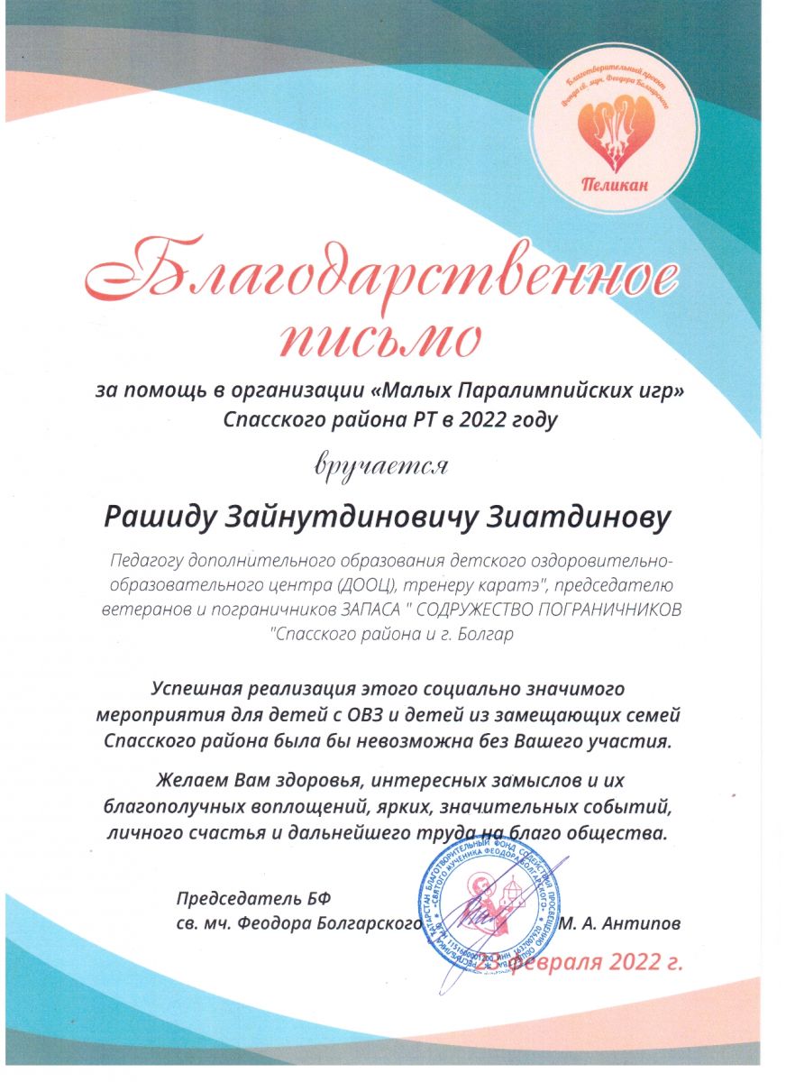 Зиатдинов Благодарность Малых Паралимп игр.jpg