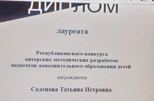 Лауреат республиканского конкурса авторских мтодических разработок педагогов дополнительного образования детей 25.03.2020