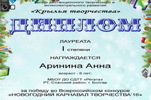 Юная воспитанница стала победителем и была награждена дипломом лауреата 1 степени. 15.01.2017