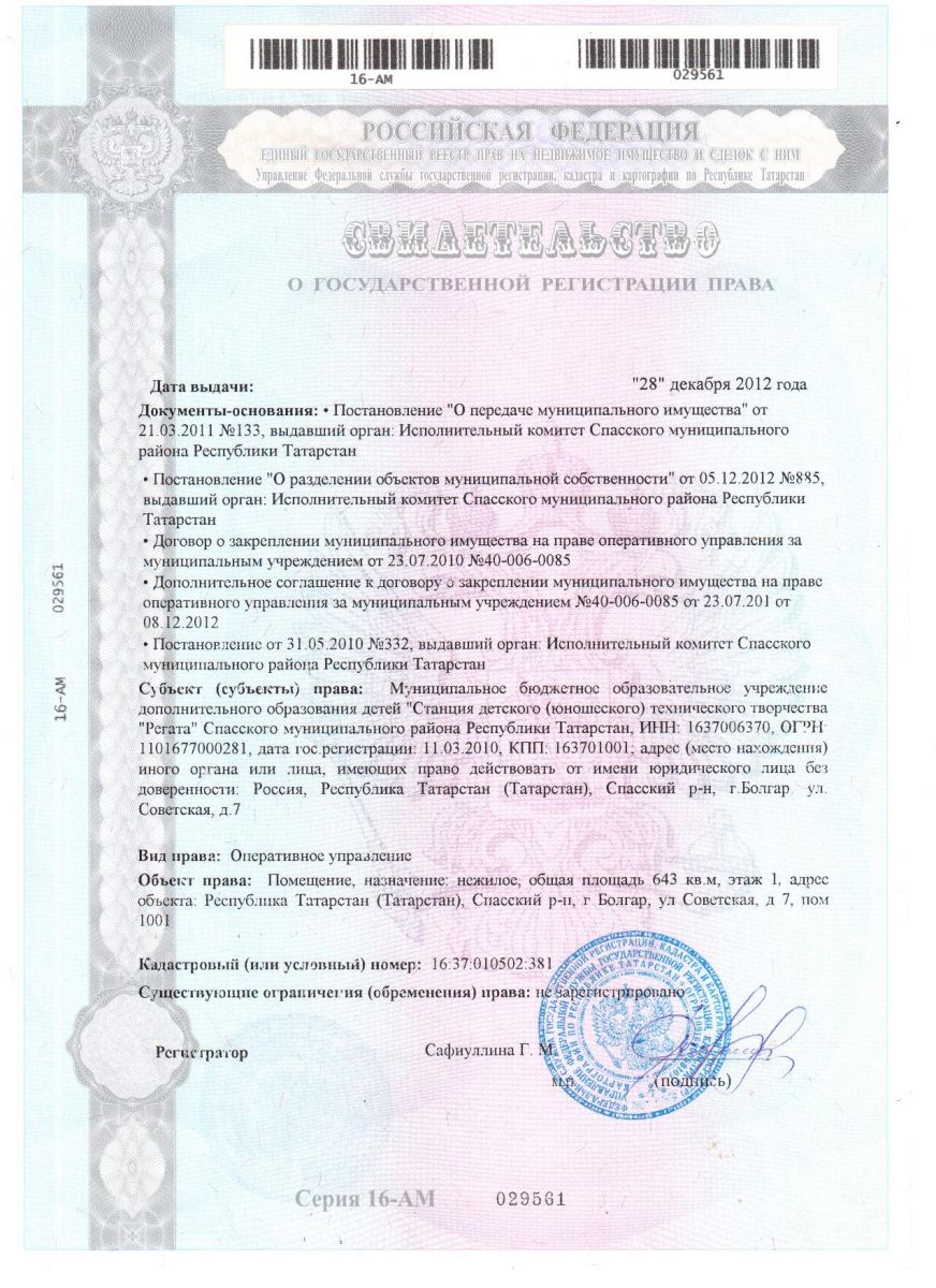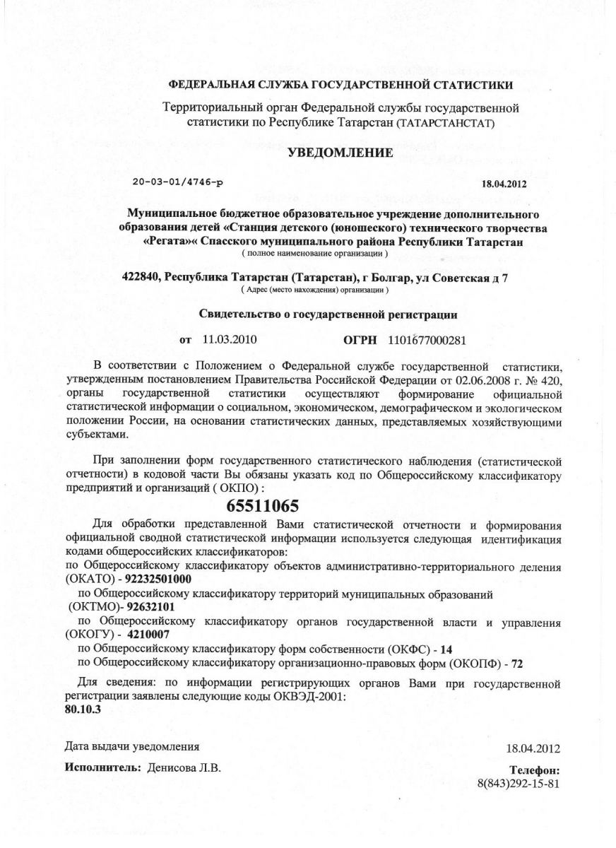 Муниципальное бюджетное образовательное учреждение дополнительного образования «Станция детского (юношеского) технического творчества «РЕГАТА»» Спасского муниципального района Республики Татарстан /Татарстан Республикасы Спас муниципаль районының өстәмә белем бирүче «РЕГАТА» балалар (яшүсмерләр) техник иҗат станциясе» муниципаль бюджет учреждениесе.