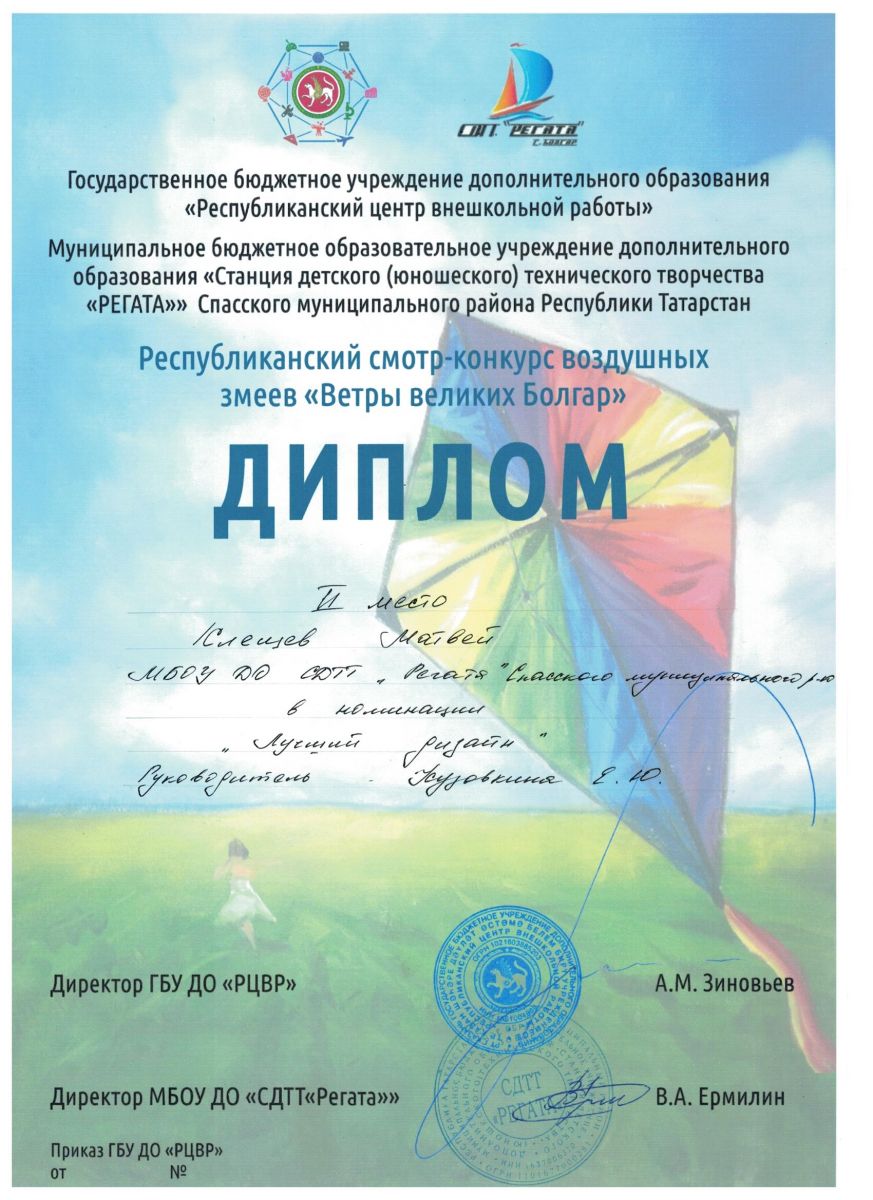 Муниципальное бюджетное образовательное учреждение дополнительного образования «Станция детского (юношеского) технического творчества «РЕГАТА»» Спасского муниципального района Республики Татарстан /Татарстан Республикасы Спас муниципаль районының өстәмә белем бирүче «РЕГАТА» балалар (яшүсмерләр) техник иҗат станциясе» муниципаль бюджет учреждениесе.