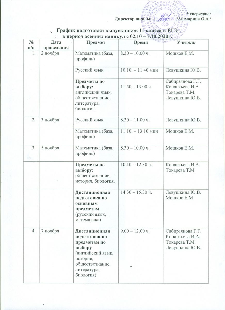 График консультаций по подготовке к экзаменам на осенние каникулы 01.11.2020
