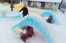 В детском саду появилась прекрасная зимняя площадка, где дети с большим удовольствием проводят время на прогулке.