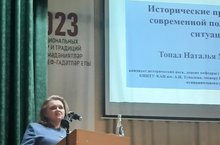 Сегодня в рамках августовских совещаний для руководителей образовательных организаций района, их заместителей и учителей истории Доцент Казанского национального исследовательского технического университета им А.Н. Туполева (КАИ) Топал Наталья Михайловна провела лекции "Исторические основания современной политической ситуации", "Приверженность высшим нравственным принципам, верность государству".