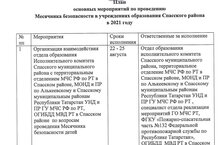 План основных мероприятий по проведению Месячника безопасности в учреждениях образования Спасского района в 2021 году утвержден председателем Комиссии по предупреждению и ликвидации чрезвычайных ситуаций и обеспечению пожарной безопасности Спасского муниципального района РТ при Исполнительном комитете Спасского муниципального района Осокиным В.А.