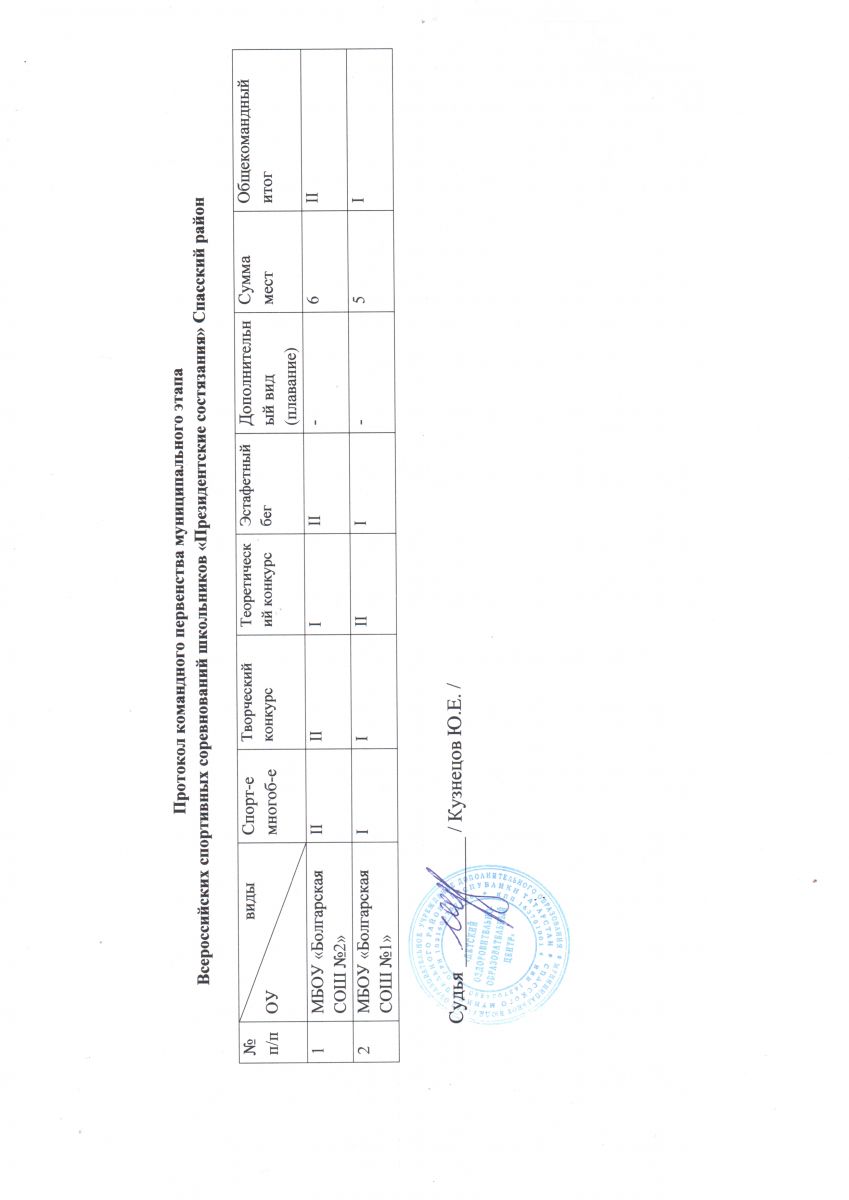 - Итоговый протокол проведения муниципального этапа Всероссийских спортивных игр школьных спортивных клубов