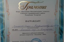 Безнен "Йолдызчык конкурсында" алынган грамотабыз. 13.05.2016