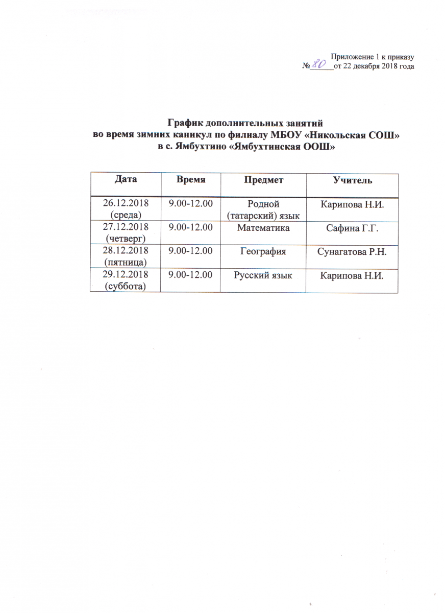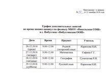 График дополнительных занятий во время зимних каникул по филиалу МБОУ "Никольская СОШ" в с.Ямбухтино "Ямбухтинская ООШ" 25.12.2018