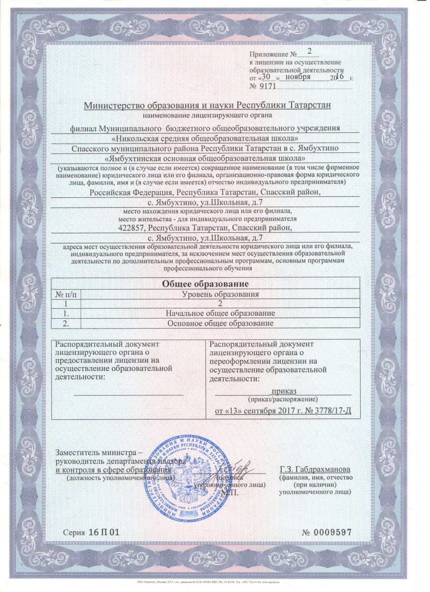 Филиал МБОУ «Никольская средняя общеобразовательная школа» Спасского муниципального района Республики Татарстан в с.Ямбухтино «Ямбухтинская ООШ»/Татарстан Республикасы Спас муниципаль районы «Никольское урта гомуми белем бирү мәктәбе» муниципаль бюджет гомуми белем бирү учреждениесенең Ямбакты авылындагы филиалы «Ямбакты төп гомуми белем бирү мәктәбе»