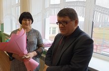 Сегодня коллектив школы поздравил с юбилеем учителя начальных классов Сулейманову З.Г. Тепло и сердечно поздравив директор школы Гарифуллин В.Ю вручил цветы.