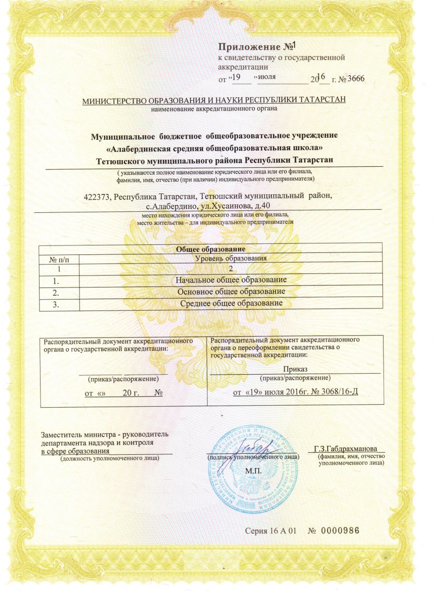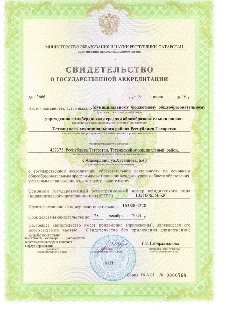 Муниципальное бюджетное общеобразовательное учреждение «Алабердинская средняя общеобразовательная школа» Тетюшского муниципального района РТ/Татарстан республикасы Тәтеш муниципаль районы "Алабирде урта гомуми белем бирү мәктәбе" муниципаль бюджет гомуми белем бирү учреждениесе