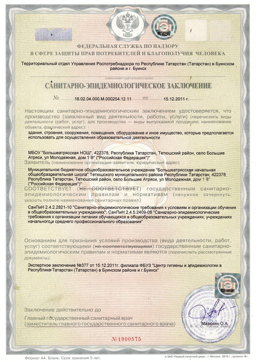 Муниципальное бюджетное общеобразовательное учреждение «Большеатрясская начальная общеобразовательная школа» Тетюшского муниципального района Республики Татарстан/Татарстан Республикасы Тәтеш муниципаль районы «Зур Әтрәч башлангыч гомуми белем бирү мәктәбе» муниципаль бюджет гомуми белем бирү учреждениесе