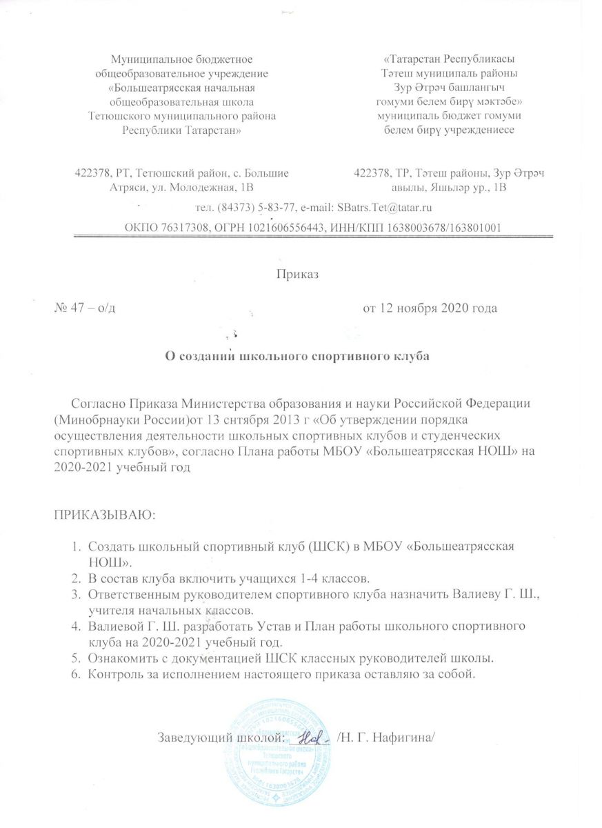 Муниципальное бюджетное общеобразовательное учреждение «Большеатрясская начальная общеобразовательная школа» Тетюшского муниципального района Республики Татарстан/Татарстан Республикасы Тәтеш муниципаль районы «Зур Әтрәч башлангыч гомуми белем бирү мәктәбе» муниципаль бюджет гомуми белем бирү учреждениесе