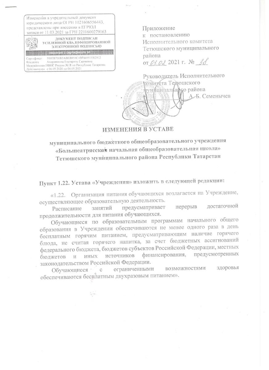 Муниципальное бюджетное общеобразовательное учреждение «Большеатрясская начальная общеобразовательная школа» Тетюшского муниципального района Республики Татарстан/Татарстан Республикасы Тәтеш муниципаль районы «Зур Әтрәч башлангыч гомуми белем бирү мәктәбе» муниципаль бюджет гомуми белем бирү учреждениесе