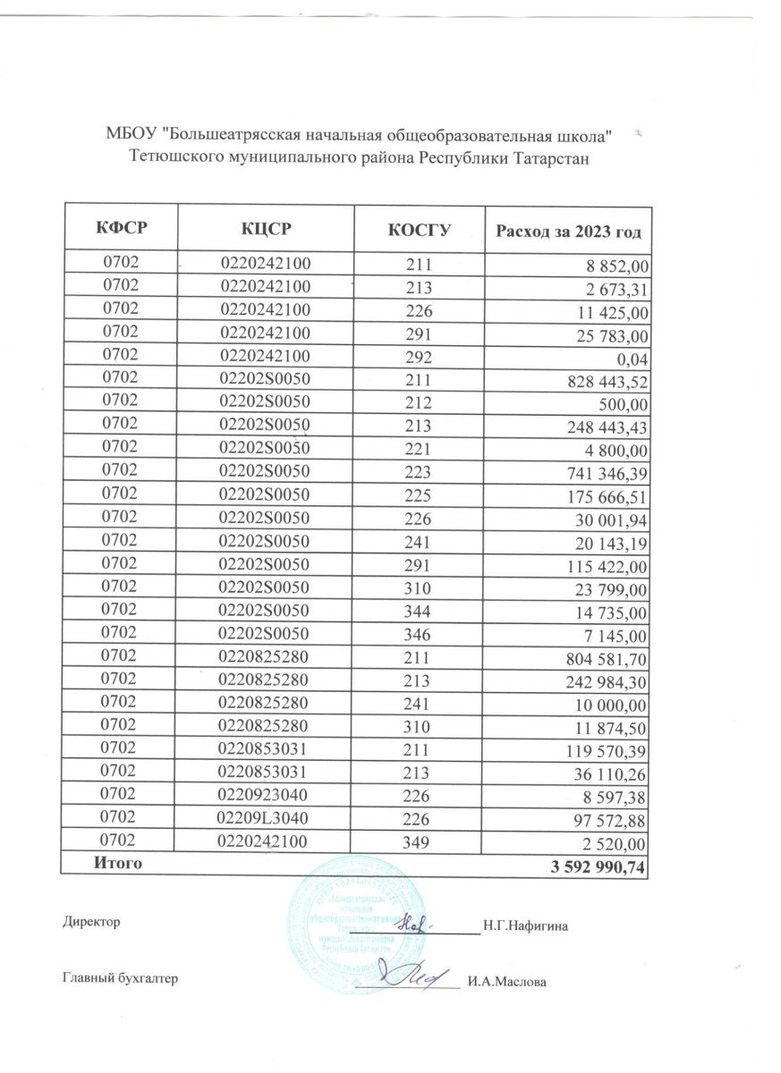 Информация о расходовании финансовых и материальных средств по итогам финансового 2023 года