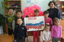 В рамках мероприятий,приуроченных Дню России, обучающиеся школы-детский сад под руководством учителя начальных ,Альденейкиной С.П., классов изготовили декоративное панно "Цвета России" .