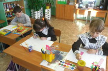 Идет подготовка к районному конкурсу рисунков "Моя любимая мамочка".