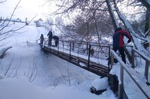 Юнармейцы школы с педагогом-организаторм очистили о снега мост, соединяющий две половины села Б.Шемякино.