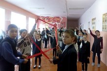 Сегодня члены отряда "SMS-дети" провели флешмоб "Школа -территория здоровья".