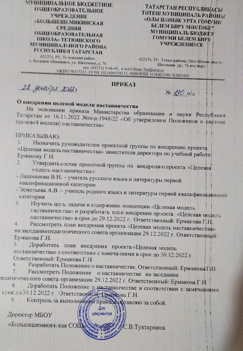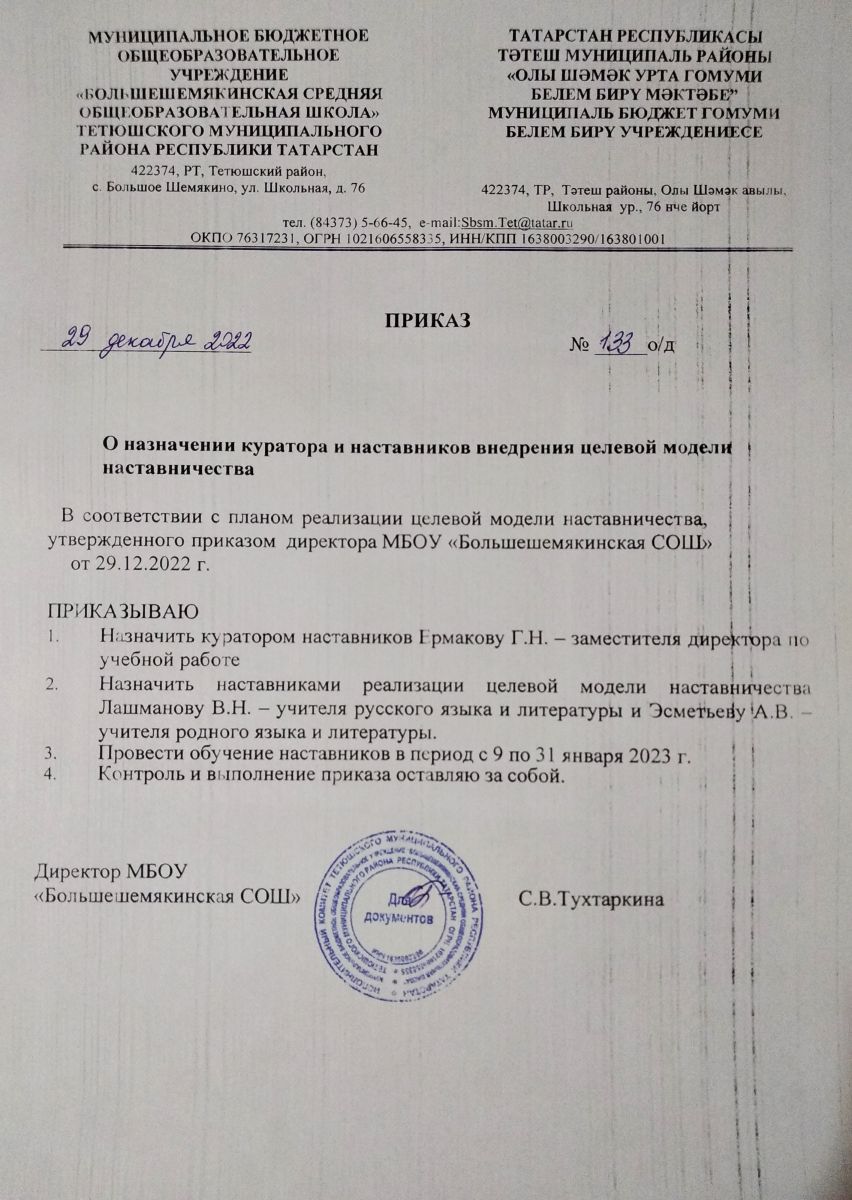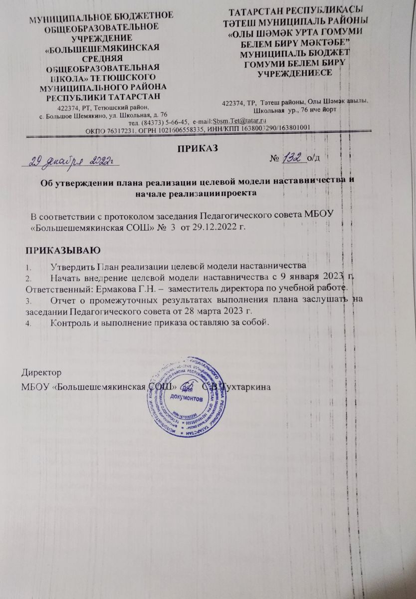 Муниципальное бюджетное общеобразовательное учреждение «Большешемякинская средняя общеобразовательная школа» Тетюшского муниципального района РТ/Татарстан Республикасы Тәтеш муниципаль районы "Олы Шәмәк урта гомуми белем бирү мәктәбе" муниципаль бюджет гомуми белем бирү учреждениесе