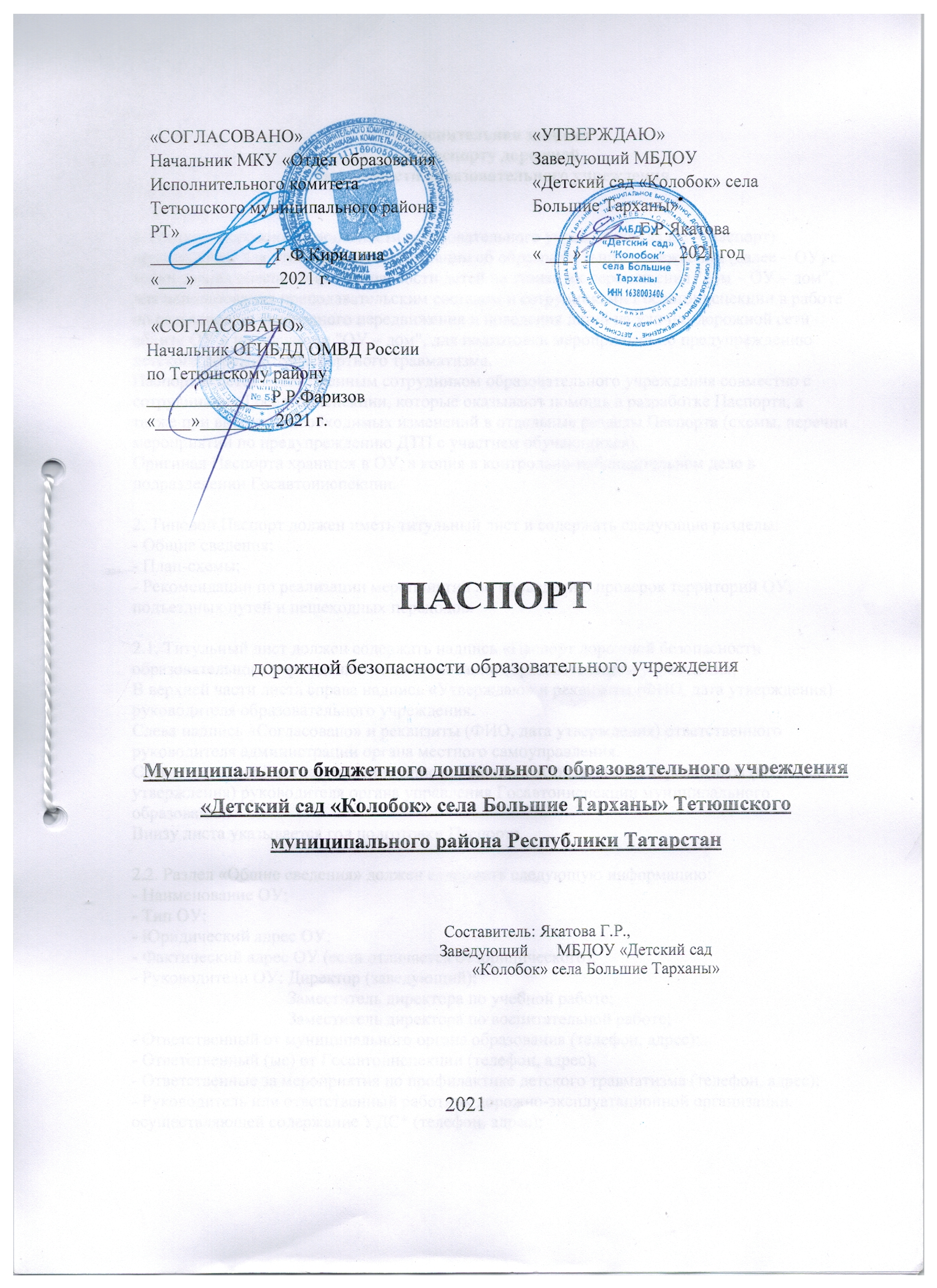 Паспорт дорожной безопасности образовательного учреждения