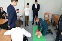 На урок был приглашен студент 4 курса Тетюшского государственного колледжа гражданской защиты Шамсутдинов Айрат. Он рассказал ребятам о профессиях спасателя и пожарного, а также об условиях приема в 2022 году в Тетюшский государственный колледж гражданской защиты.