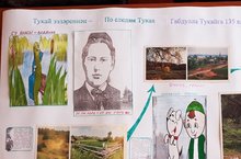 В рамках 135-летнего юбилея великого поэта, переводчика, публициста, литературного критика, общественногодеятеля Габдуллы Тукая в Большетарханской школьной библиотеке учащиеся выпустили плакат “По следам Тукая” (“Тукай эзләреннән”).