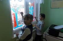 После уроков ребята решили нарисовать свои рисунки на окнах. Получились отличные узоры. Всем прохожим нравится наша фантазия.