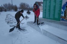 Сегодня прошла очередная операция «Обелиск». Ребята очистили от снега тротуарные дорожки и территорию вокруг Памятника воинам-односельчанам, погибшим в Великой Отечественной войне.