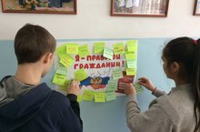 В рамках празднования Дня Конституции РФ в МБОУ «Байрашевская ООШ» зам. директора по ВР Боченина Т.С. провела акцию «Я - правовой гражданин!». В рамках акции Татьяна Станиславовна рассказала, что Россия – правовое государство, в котором все граждане соблюдают законы, а самый основной закон – это Конституция Российской Федерации. Именно в ней прописаны все права и обязанности граждан РФ. Далее ребятам было предложено вспомнить свои права, свободы, а также обязанности и, написав их на листочке, прикрепить к плакату. Результатом акции стал плакат, на котором были прописаны все основные права и обязанности граждан. Акция была проведена с целью воспитания правовой культуры учащихся.