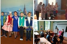 День национального костюма в МБОУ «Бакрчинская СОШ» прошла очень интересно. С утра учащиеся были одеты в национальные чувашские , татарские, русские костюмы. Учащиеся узнали б истории формирования национальной одежды, о ее цветовых гаммах и оттенках. Затем учащиеся под руководством учителя чувашского языка поиграли в национальную игру «Колечко» /Бакырчыуртагомумибелембирү мәктәбендә Милли кием көне бик кызыклы узды. Иртән үк укучылар татар һәм чуваш милли киемнәренә киенгәннәр иде. Алар милли киемнәрнең формалашу тарихы, төсләр дөньясы турында белделәр. Шуннан соң укучылар чуваш теле һәм әдәбияты укытучылары тарафыннан әзерләнгән “Йөзек” милли уенын уйнадылар