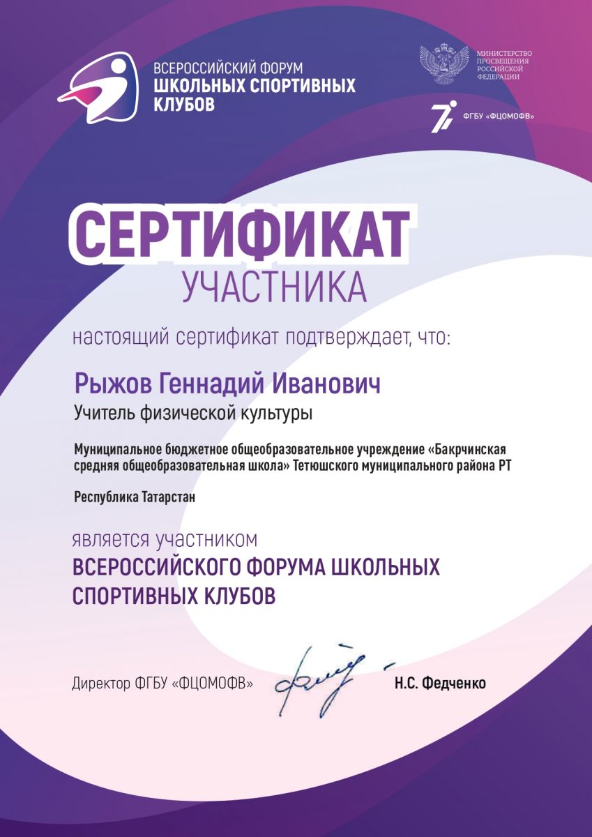 Сертификат участника Всероссийского форума ШСК