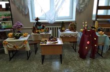 В школе открыта осенняя выставка поделок из природного материала,овощей и фруктов.