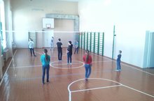 Сегодня учащиеся в спортзале школы играли в волейбол.