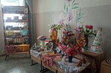 Учителя технологии Волкова В.В. и Долгов Г.Н. в фойе школы организовали выставку " Золотые руки".