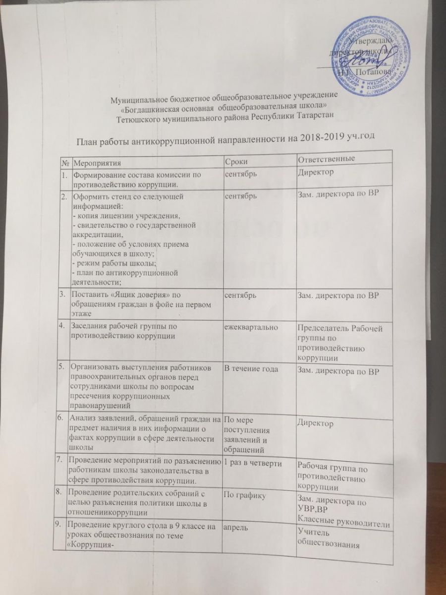 План работы школы по антикоррупционной направленности на 2018-19 уч.год