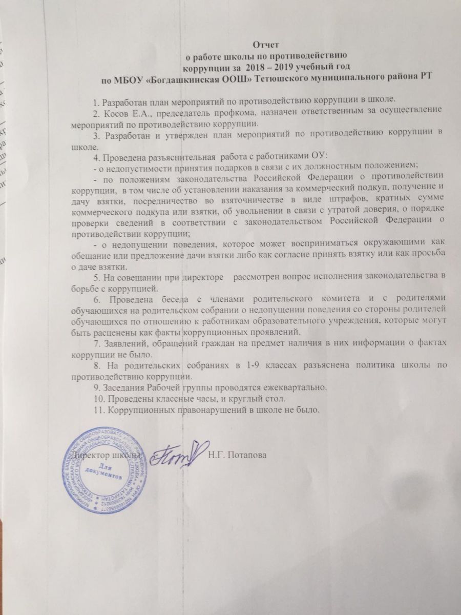 Отчет о работе школы по противодействию коррупции за 2018-19 уч.год